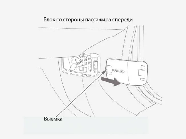 Другой салонный блок расположен справа от переднего пассажира, под крышкой. Для снятия крышки тянем пальцем за выемку.