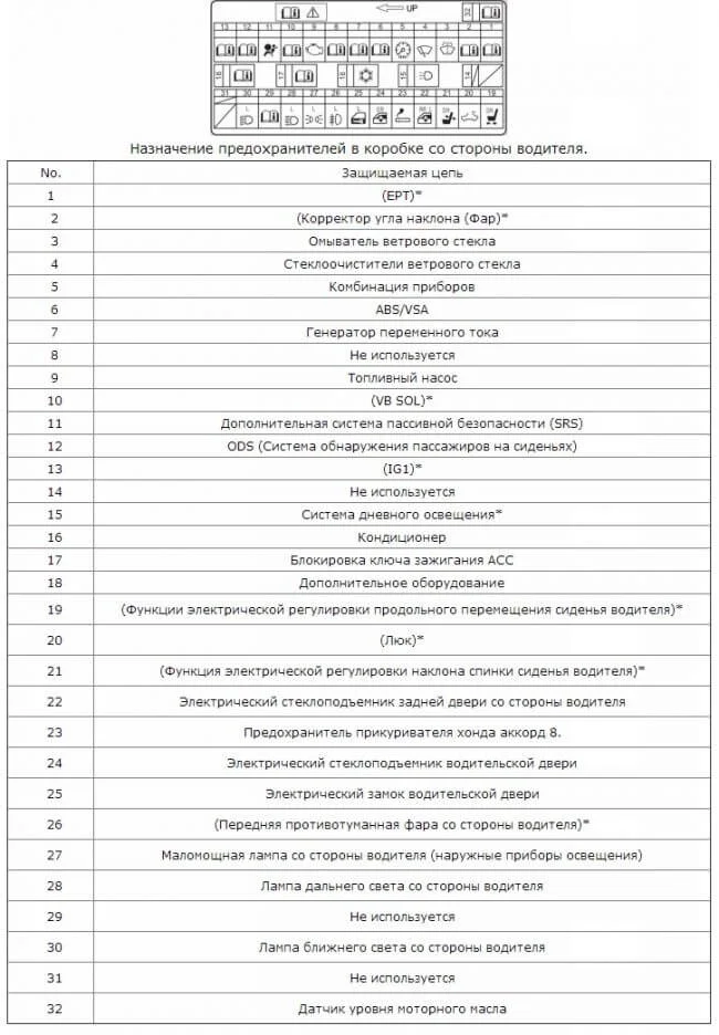 Где находятся предохранители Хонда Аккорд 8?