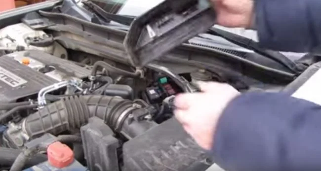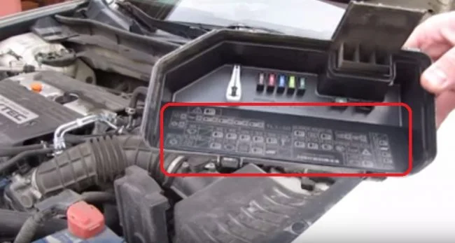 Предохранители Хонда Аккорд 8 расположены в трёх блоках. Один блок находится под капотом и два блока в салоне. Блок который под капотом установлен в следующем месте.