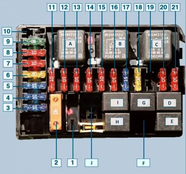 Пропала зарядка АКБ. Хочу проверить контакт и исправность предохранителя генератора. Где он расположен? Может совмещен с каким-то другим? В инструкциях не нашел.