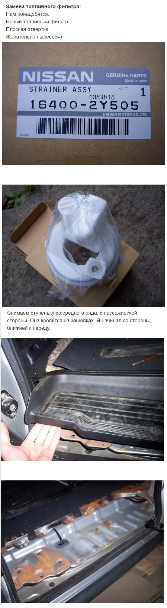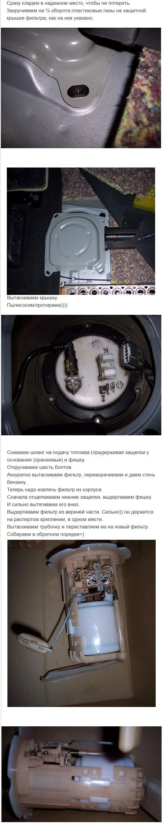Жаль что не указали модель двигателя, потому как из-за него иногда многие элементы бывают разные установлены. Вот вам для начала две ссылки, посмотрите, может это соответствует вашей комплектации. В топливном модуле, там и насос и фильтр и сеточка снизу.