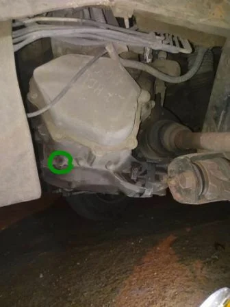 Посмотрите ниже, полагаю есть или щуп (прикручен болтом) или пробка проверки уровня.