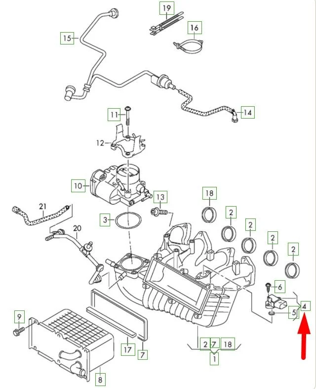 Где находится датчик воздуха на впуске, Фольксваген Кэдди?