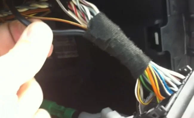 Снимаем панели бардачка и находим эти провода примотанными со специальным разъёмом на конце.