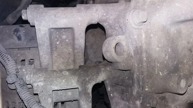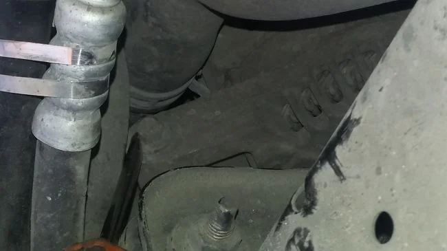 Остаются два болта, которые так же наблюдаем снизу, откручиваем их накидным на 10...