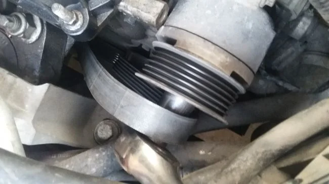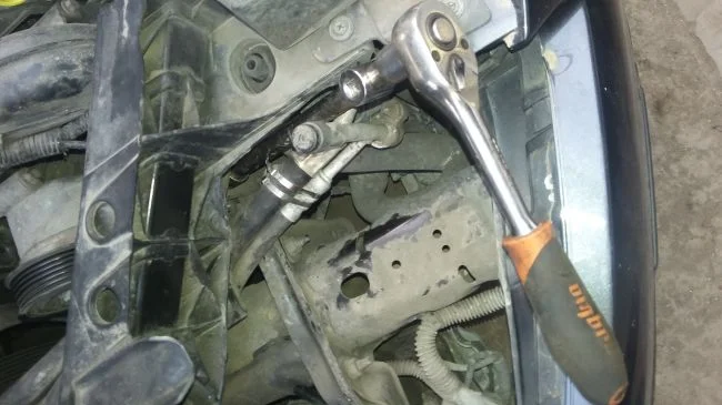 Для удобства снял фару, затем ключом на 17 против часовой стрелки проворачиваем болт ролика натяжителя и снимаем ремень.