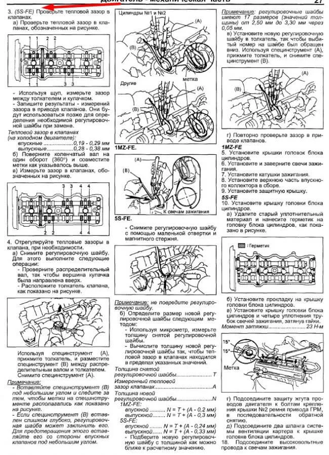 Как отрегулировать зазор клапанов на двигателе 5S-fe?