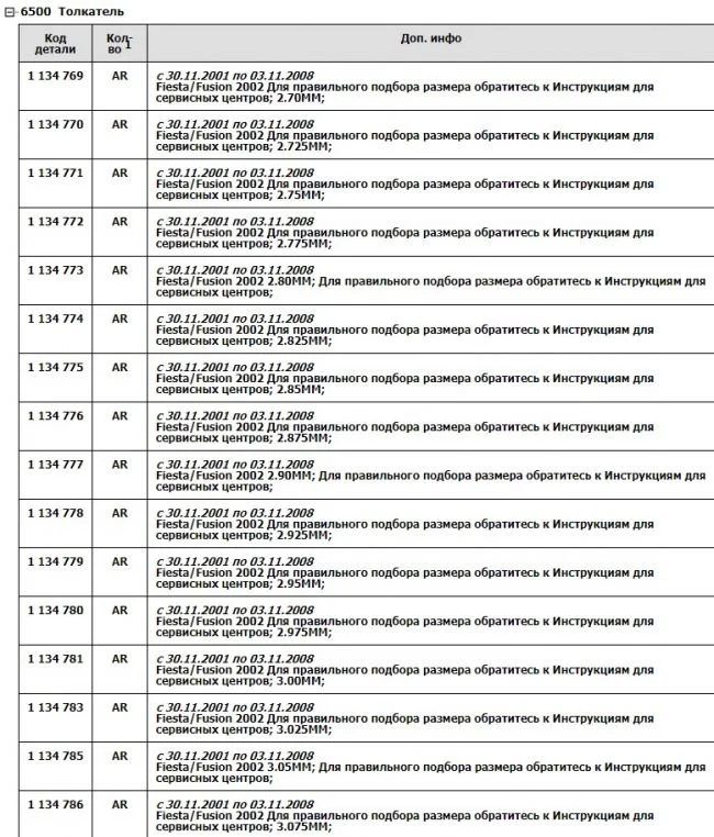 Если двигатель 1.4L Duratec 16V PFI (75PS) — Sigma (1.4L Duratec 16V PFI (90PS) — Sigma, 1.4L Zetec-S, 1.4L Zetec-S PFI Bi-Fuel 80PS Sigma, 1.4L Zetec-S PFI Bi-Fuel 96PS Sigma) — то стоят толкатели стаканчики, разного размера, нужно сначала проверить размер, высчитать нужный, потом по вин номеру заказать, артикулов много.