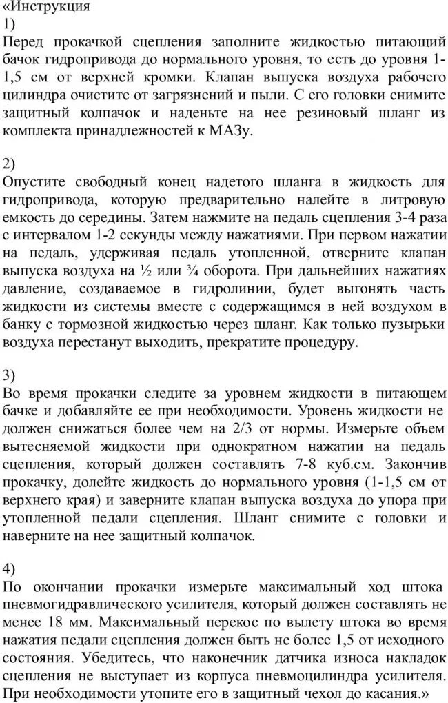 Вот вам инструкция по прокачке сцепления МАЗ: