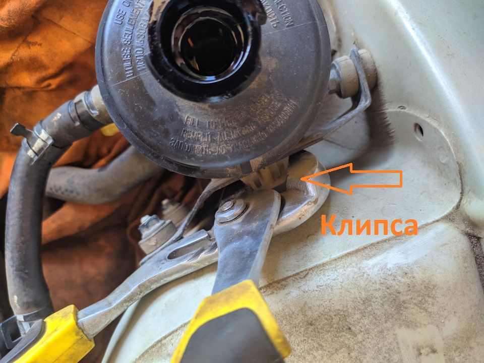 - сам бачок крепится клипсой к кузову, на фото увидите как ее снять