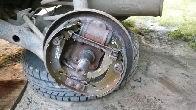 Получается вперёд едете — барабан проскальзывает по колодке, вернее по накладке. При заднем ходе, задняя колодка начинает тормозить (это называют эффект сервопривода).