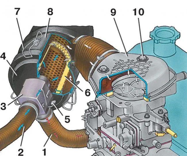 8 – корпус воздушного фильтра;
