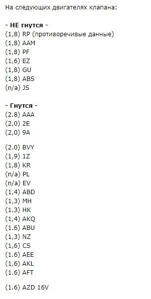 А модель двигателя какая? На PN не гнет клапана. Если клапан загнет, то поршня могут повредиться.