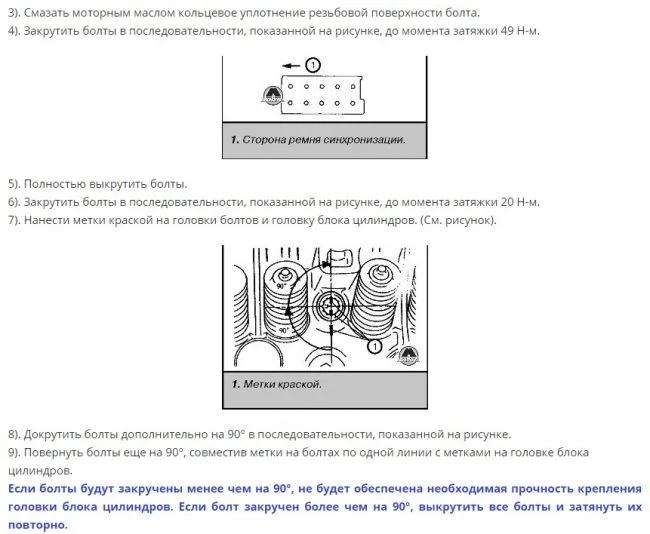 Последовательность затяжки болтов головки блока