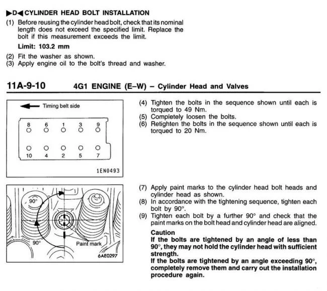 Моменты затяжки (двигатель 4G1)