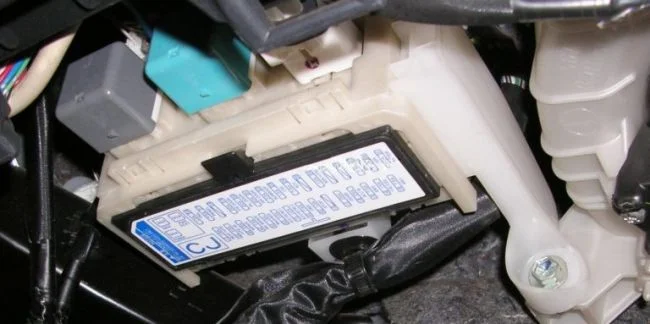 Он находится под приборной панелью за крышкой, на которой нанесена схема расположения предохранителей.