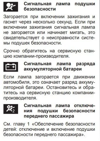 Стоит учесть, что при ДТП подушки не сработают, пока горит значок.