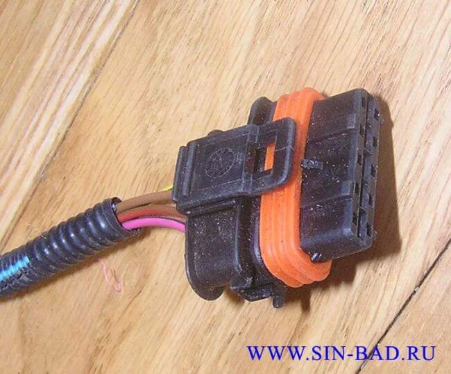 А вот ответная часть она внутри генератора, практически стоит на реле-регуляторе. То есть надо снять генератор и поставить другое реле с новой фишкой.