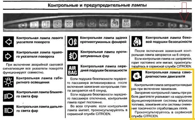 Желтым горит лампочка на панели Ситроен Ксара Пикассо