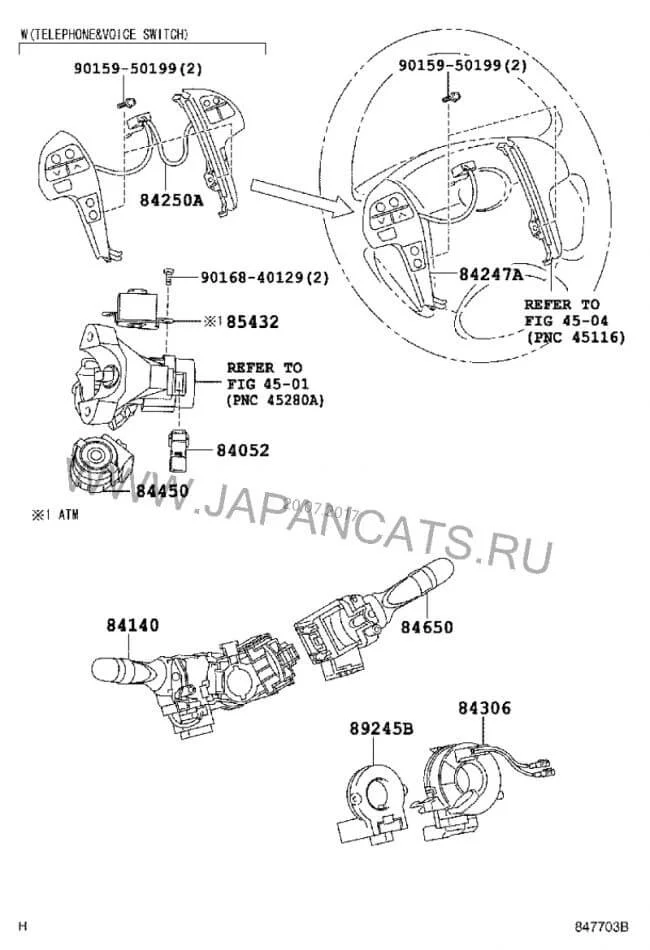 На схеме №84306, стоит на рулевом валу, нужно будет снимать подушку безопасности руля. Можете проверить его разъем под кожухом рулевого вала, только нужно предварительно снять клемму аккумулятора, при работах. Можно обратиться в автоэлектрику, он его проверит.