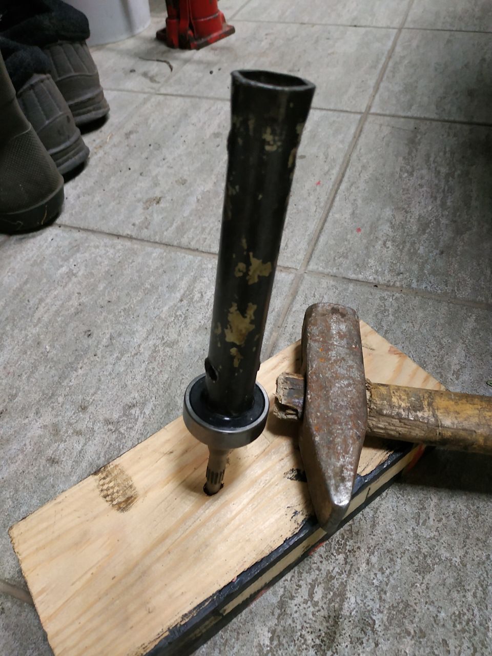 Подшипник можно снять тем же трехпалым съемником или при помощи подручных средств как на фото.