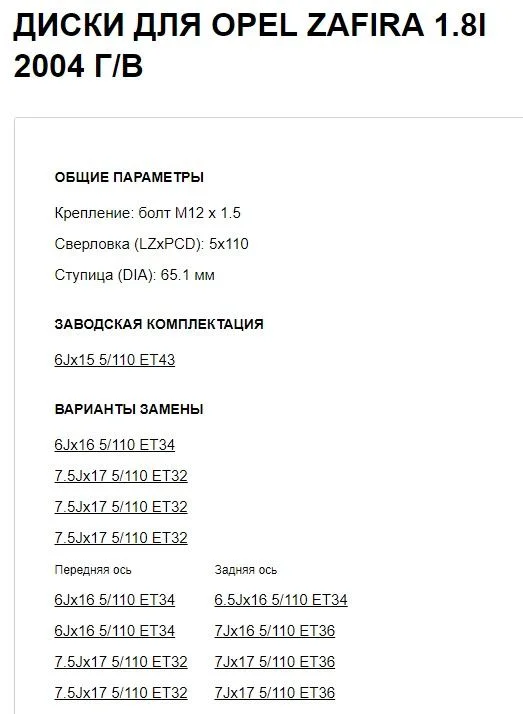 Какие диски по разболтовке подходят на Опель Зафира А?