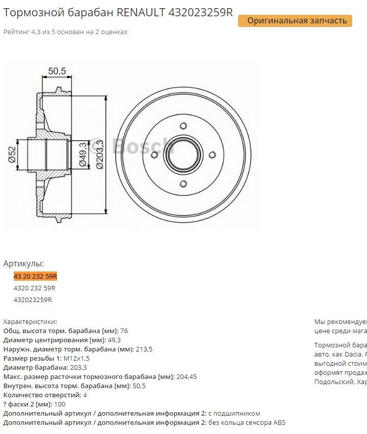 Емекс выдает по вин номеру артикул 43 20 232 59R, размер указан ниже.