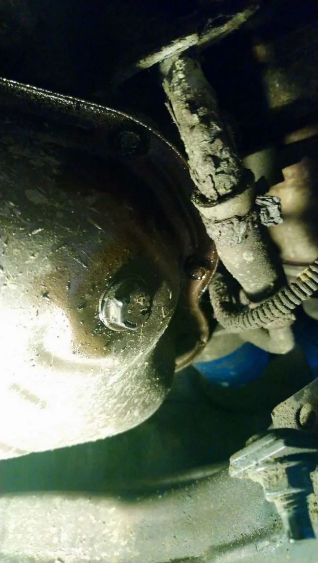 В свое время менял трубку антифризную от маслоохладителя 21621-1XD10. Тут знакомый мастер после ТО-8, где оф/дилер не смог открутить пробку переднего редуктора(якобы закисла) - легко отвернул пробку и обратил внимание - смотри тут трубка в таком же состоянии. На радостях сделал 2 одинаковых фото. Эта трубка рядом с вышеупомянутой - в правой половине, но не далеко от середины, если сзади смотреть.