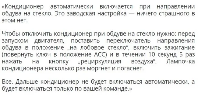 Здравствуйте. Постоянно горит индикатор обдува. Если горит обдув лобового, можно переключить на ноги или на лицо и т.д., но совсем выключить не получается.