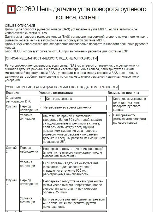 Считали ошибки, с1260 датчик поворота руля. Это наверное подрулевая спираль? Что дальше делать пока не знаю?