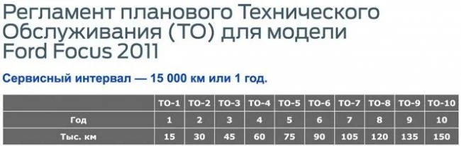 Регламент ТО Форд Фокус 3