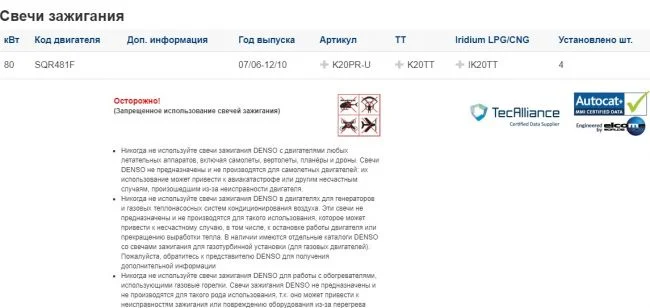 На автомобиле стоит бензиновый 16-кл. 4-х цилиндровый двигатель Acteco SQR481F, объем 1.6 л, мощность 119 л.с. Можно ли на него ставить свечи зажигания DENSO Q20TT? Спасибо.