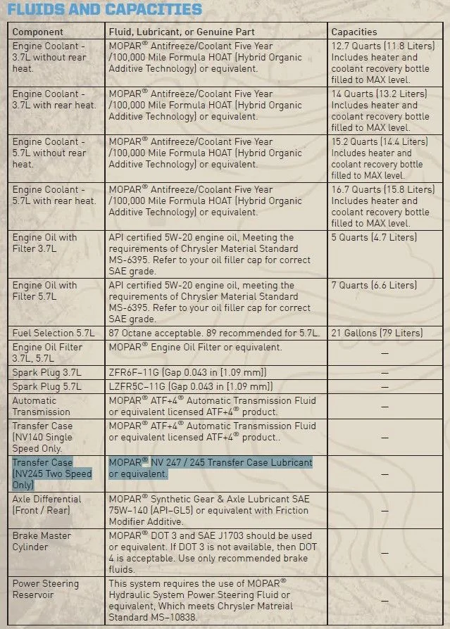 Производитель рекомендует лить в раздатку 245, оригинальное масло Chrysler 05016 796AC (Масло трансмиссионное «NV245 NV247 NV249 », 0.946 литра). Официальный сайт Motul выдает масло TRH 97 103711, но у него нет допуска MS-10216, лучше лейте оригинальное масло.