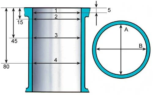 Почему первое измерение проводится именно через 5 мм от верхнего края цилиндра? Примечание: блок новый, только после расточки, поэтому зона износа тут ни при чем.