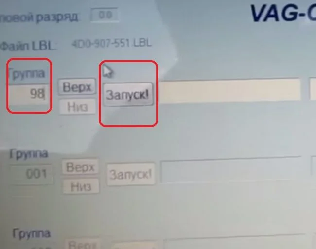 В активной группе вводим число 98 если привод дроссельной заслонки с помощью троса, или 60 если привод электрический(электронная педаль).