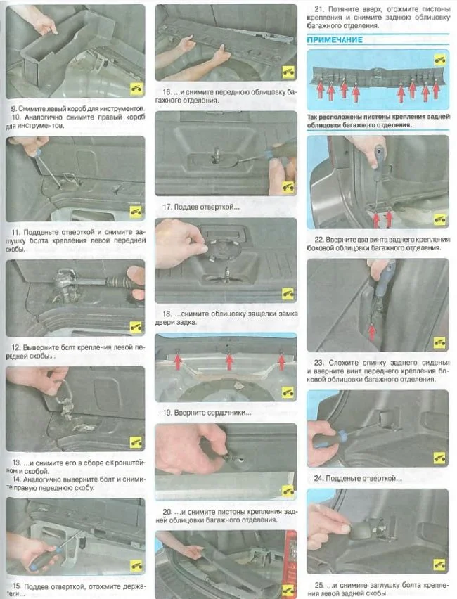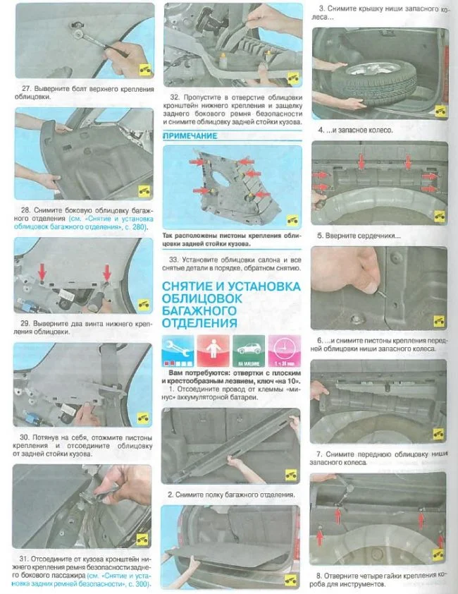 Как снять обшивки багажника на Kia Sportage именно второго поколения, что бы добраться до проводки задних фонарей, подробно описано в выдержке из руководства и видео для наглядности.