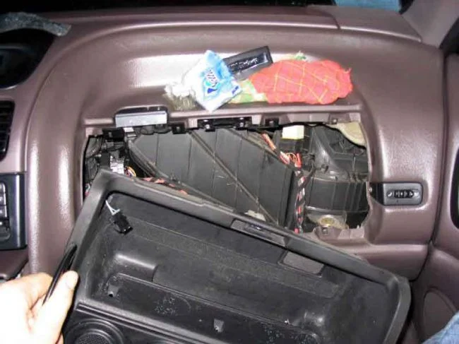 Всё там облазил, всё что можно выкрутил(три самореза в нише бардачка), но он не вытаскивается, а панель под которой должна находиться подушка — тоже ни с места.