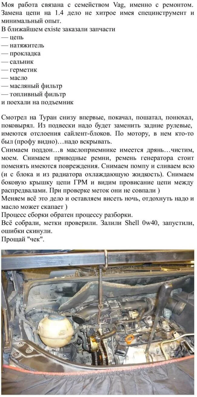 У меня Джетта, 1,4, tsi. Подскажите, как можно самому заменить цепь без специнструмента? Спасибо.