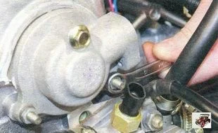 Отсоедините от датчика фазы разъем жгута проводов, отжав ее фиксатор. Выверните болт и отверните две гайки крепления задней крышки головки блока цилиндров.