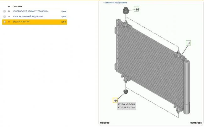Как крепится радиатор кондиционера в Ситроен Ц4?