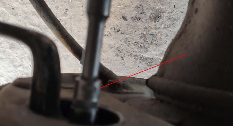 Еще стоит отметить, что со временем тросы ручника могут растягиваться и им тоже потребуется регулировка. Для регулировки подкрутите ниже отмеченную гайку до того момента, пока не будет устранено провисание троса. Одним ключом на тринадцать держите стопорную гайку, другим крутите регулировочную.