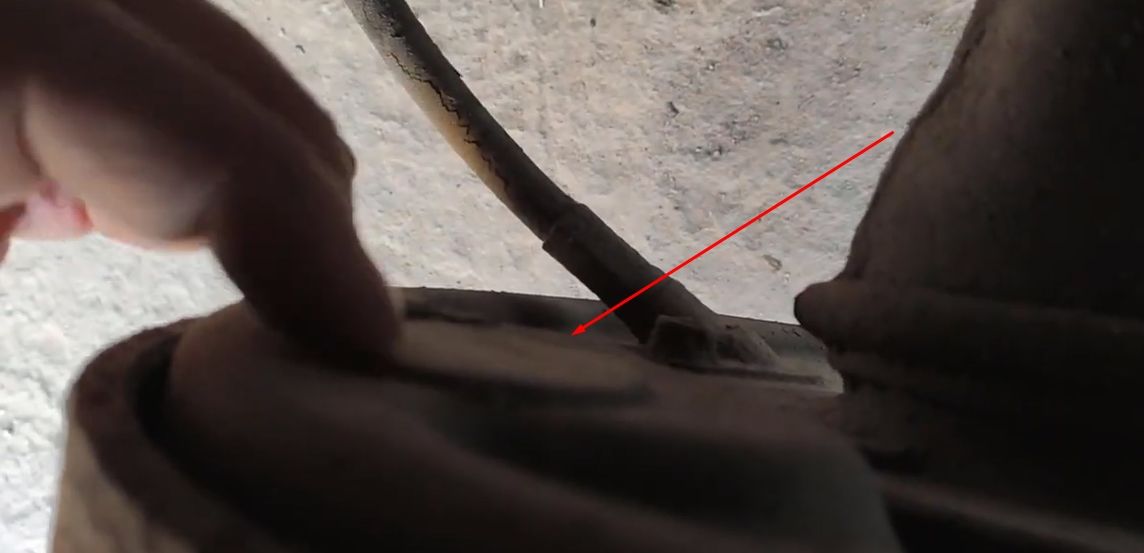 Со стороны, где трос ручника входит в ступицу, поддев шлицевой отверткой снимите пластиковую заглушку.