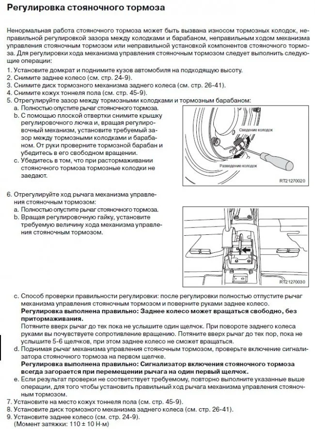 Сначала попробуйте подвести колодки ручника, если не поможет, тогда уже подтягивать трос у рычага в салоне. Ниже инструкция, пункт 3 не нужен, колодки нужно регулировать при одетом тормозном диске. Для доступа к гайке рычага лучше поискать более простой доступ.