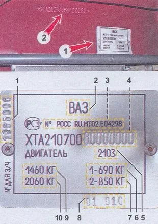 Паспортные данные автомобиля ваз 2107 указаны в сводной табличке (1), которая закреплена на нижней полке коробки воздухопритока