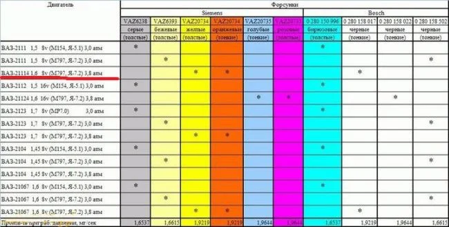 Какие форсунки нужны для ВАЗ 2110 114 двигатель мозги январь 7.2?
