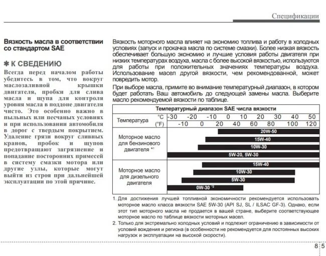 Классификация масла и его объем указаны ниже в таблице, вязкость оптимальная 5W-40, 5W-30, в зависимости от температуры эксплуатации. Заливать лучше синтетику, на крайний случай полусинтетику.
