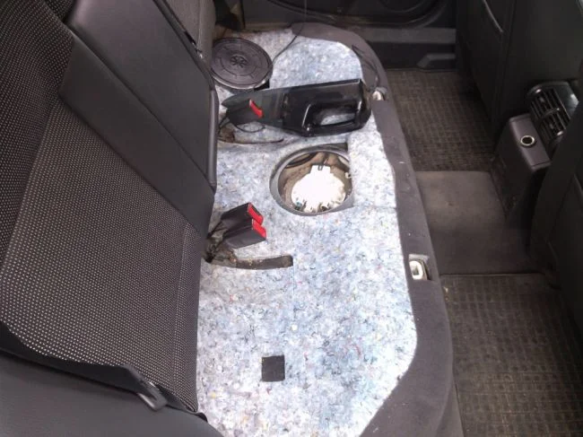 Как откинуть заднее сидение для доступа к бензонасосу?