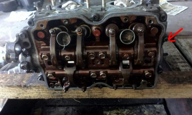 Ну их же видно на фото, с левой стороны снаружи от границы клапанной крышки, по обе стороны от оси распредвала. По центру оси распредвала на фото виден выступ как будто с прорезью под обычную отвертку, а по обе стороны от него (вверху и внизу) видно эти болты… По каталогу они названы неправильно — болты крепления насоса охлаждения в разделе «головка блока». На заказ не поставляются. Пришлось купить обычный болт на 6 и закрутить. Течи масла(тьфу, тьфу, тьфу, чтоб не сглазить) нет...