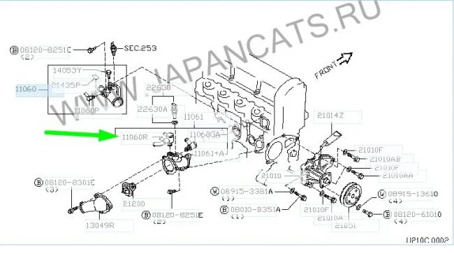 Как открутить тройник на кожухе термостата Ниссан Примера 2,0D 75?