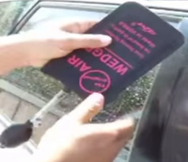 Лучший вариант в таком случае конечно вызвать соответствующую службу. Но если нет такой возможности тогда можно попробовать самому. Общая схема в том что бы отжать от стойки верхний угол одной из передних дверей. Затем через образовавшуюся щель зацепить и поднять кнопку фиксатора замка. Отжать угол двери можно с помощью пневматической подушки(или тонометром для замера кровяного давления).